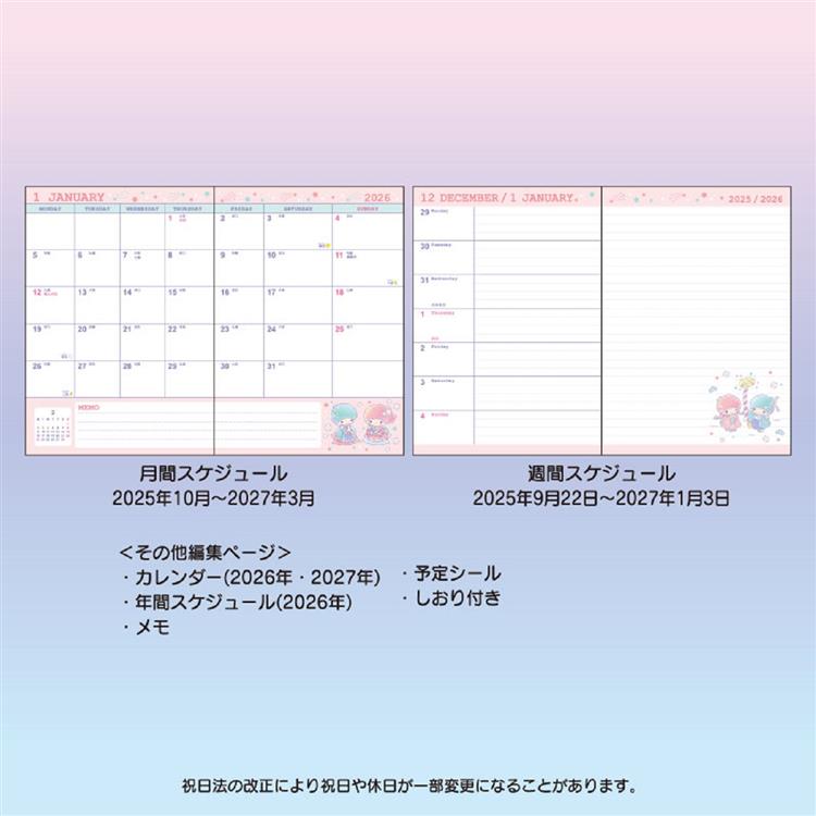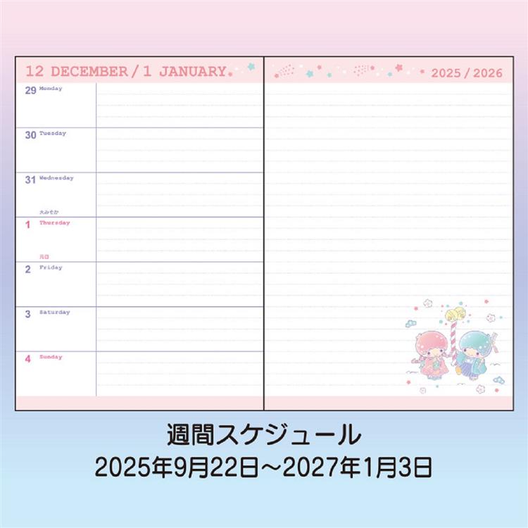 - 2025年10月始まり手帳 週間レフト B6 サンリオキャラクターズ リトルツインスターズ