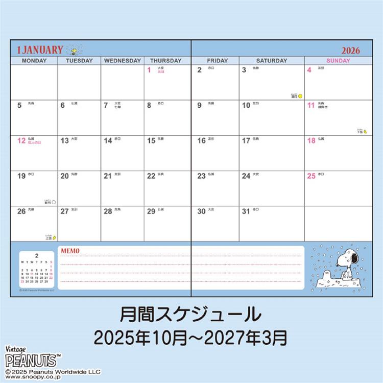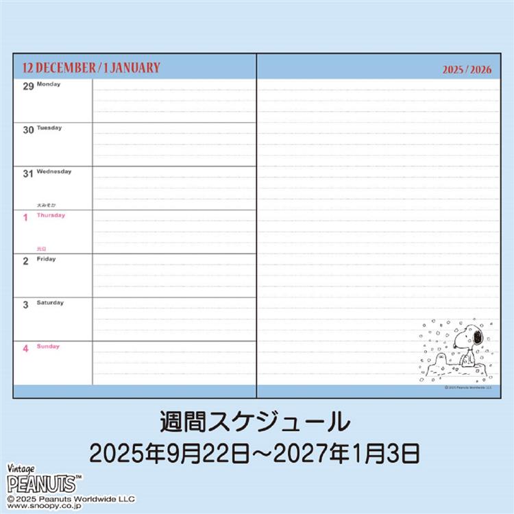 2025年10月始まり手帳 週間レフト B6 PEANUTS スヌーピー