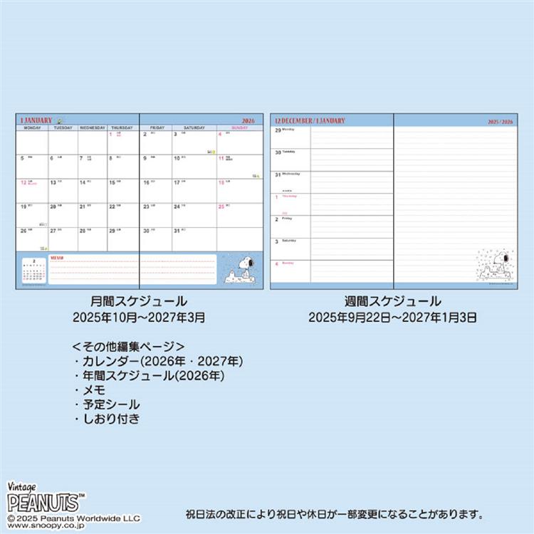 - 2025年10月始まり手帳 週間レフト B6 PEANUTS スヌーピー