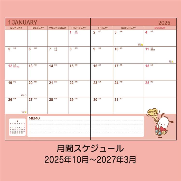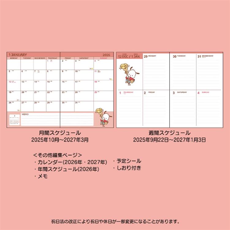 - 2025年10月始まり手帳 週間ブロック B6 サンリオキャラクターズ ポチャッコ
