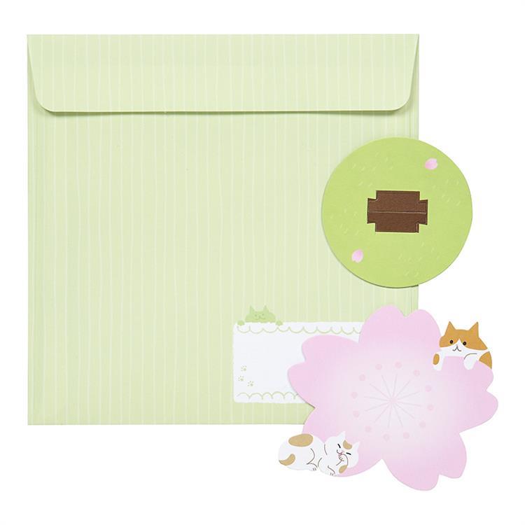ネコモチーフの春のごあいさつに使いやすい、カードです。