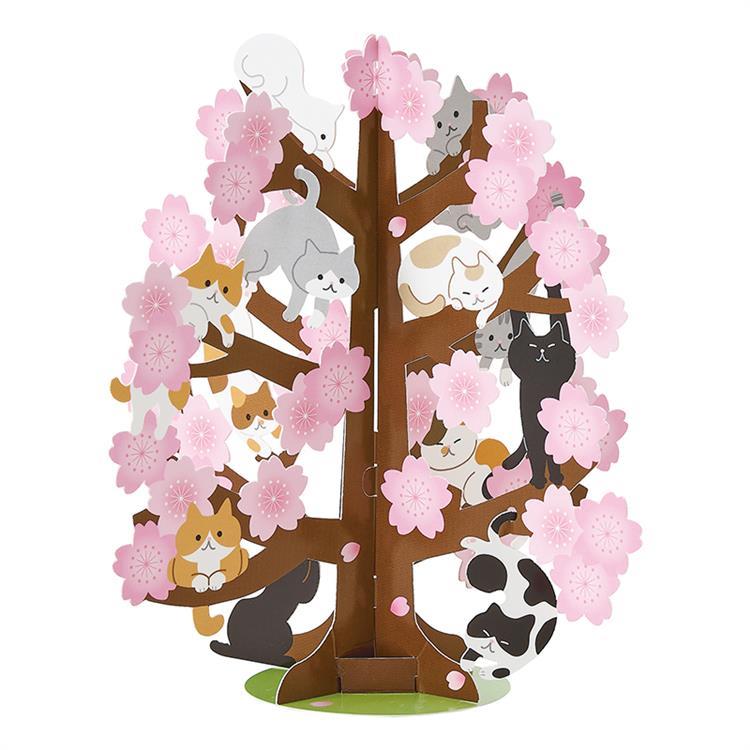 - 春柄 カード 立体 桜の木にネコ