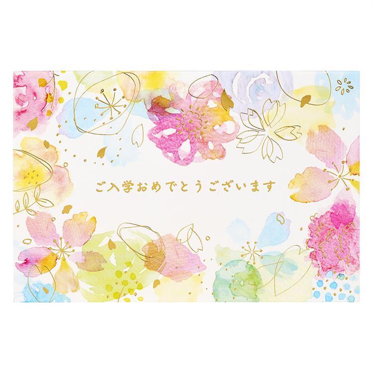 入学祝い向けにデザインされた、水彩の花柄ポップアップカードです。