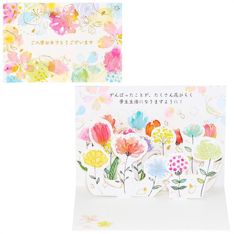 - 入学祝いカード ポップアップ 水彩の花