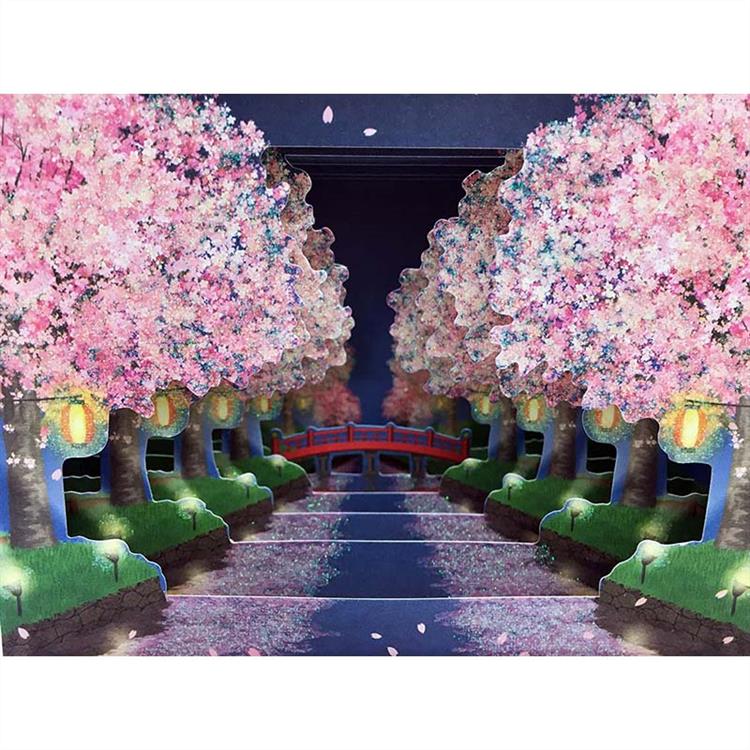 - 春柄 多目的カード 立体 箱形 夜桜並木