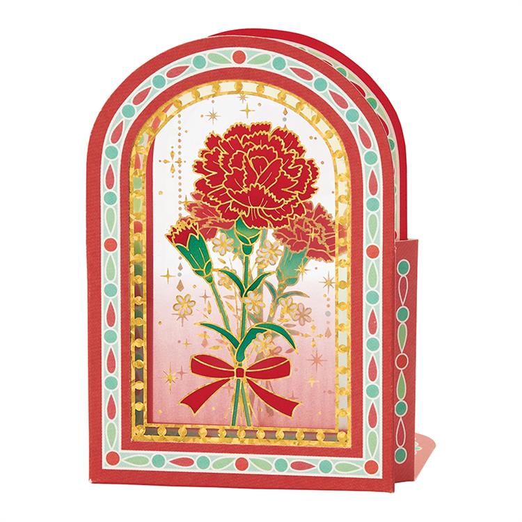・赤色のカーネーションをステンドグラス風にデザインしたミニカードです。