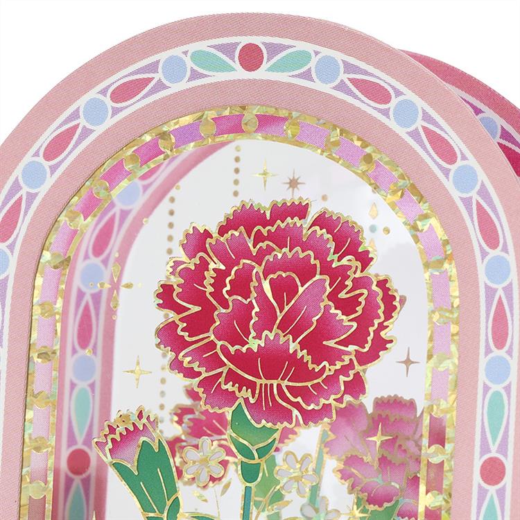 ・ピンク色のカーネーションをステンドグラス風にデザインしたミニカードです。