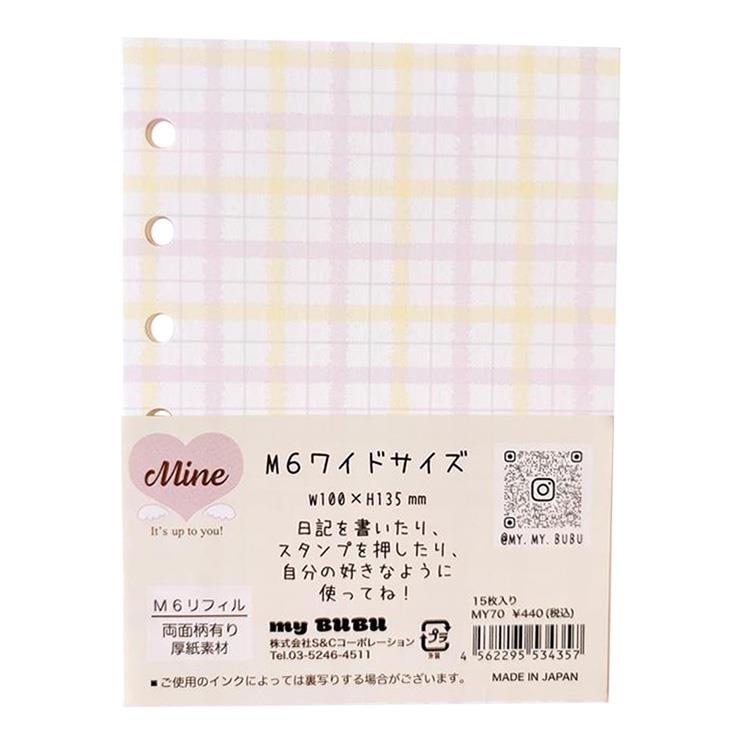 - システム手帳リフィル ミニ6 Mine ワイドサイズ チェック ピンク/イエロー