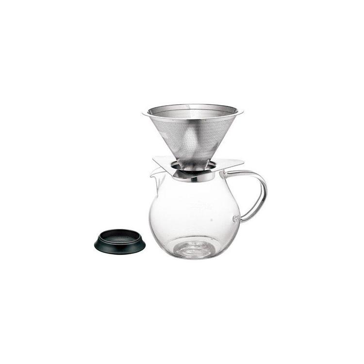 ペーパーレスで繰り返し何度も使えるオールステンレス製のコーヒードリッパーとポット