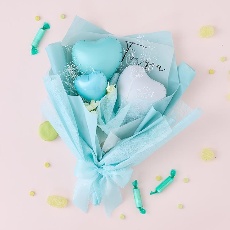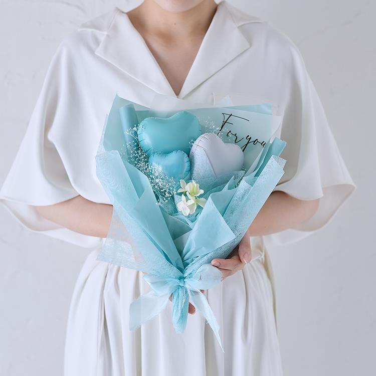 ハート型バルーン×3・ブリザーブドフラワー・アートフラワーでアレンジした、燦たる華やかさ際立つ「バルーンブーケ」。