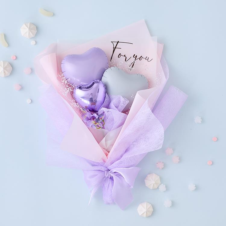 ハート型バルーン×3・ブリザーブドフラワー・アートフラワーでアレンジした、燦たる華やかさ際立つ「バルーンブーケ」。