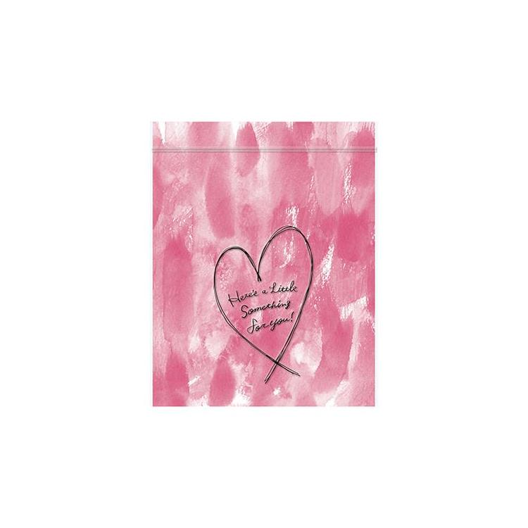 ピンクの淡い水彩タッチの柄に、手書き風のハートとメッセージが描かれた、可愛らしい袋です。