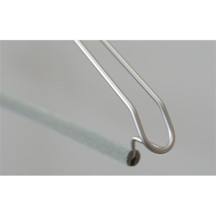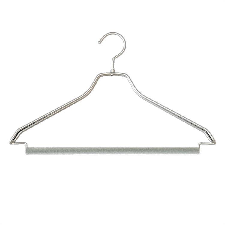 丈夫なスチール素材を使用したハンガーに、滑り止め効果のある植毛加工バーをプラスしました。