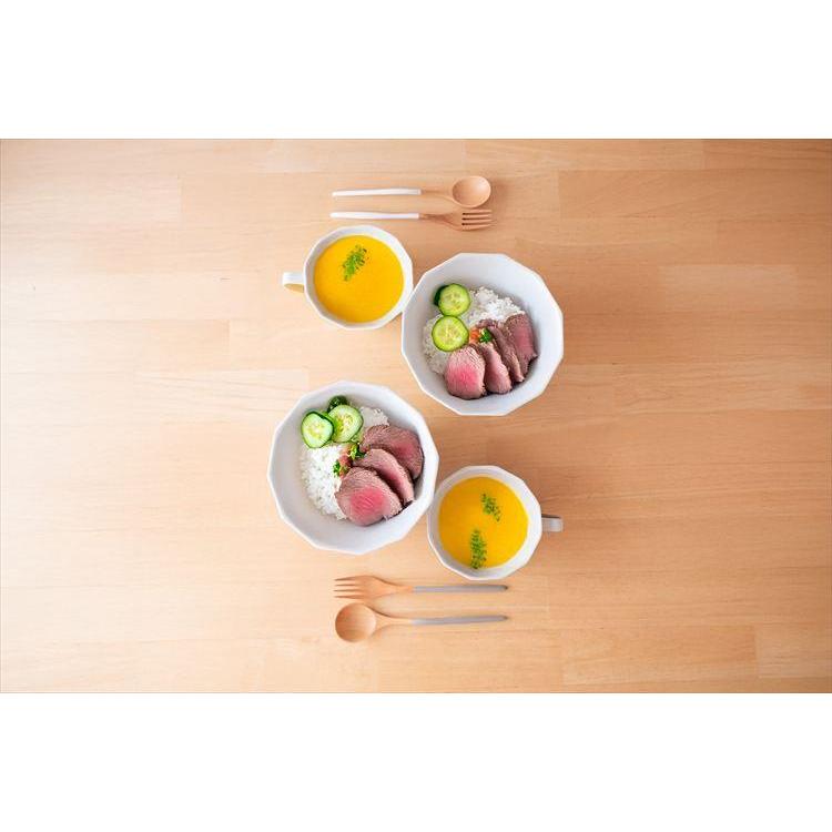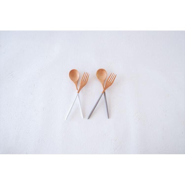 フォークとスプーンの2種類、ホワイトとグレーの2色展開で、器とカラーコーディネートが楽しめます。