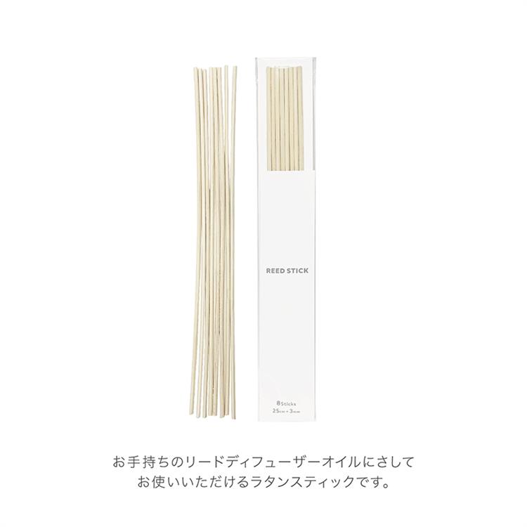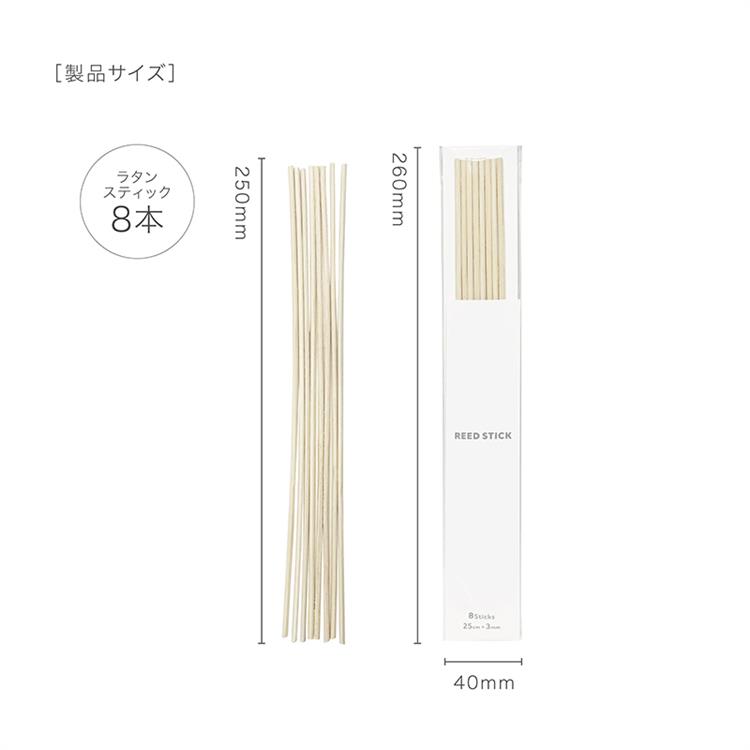 - 別売りリードディフューザーオイルにさし込んでご使用下さい。さし込む本数で、香りの強さを調整してください。香りが弱まりましたら、スティックを上下逆にしてご使用いただくか、新しいスティックと交換して下さい。