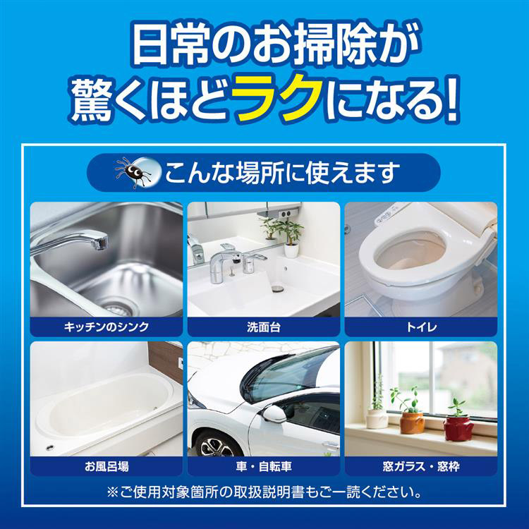 吹きかけて流すだけなのに水、汚れを弾く!家中簡単コーティング。毎日のお手入れを簡単にします。