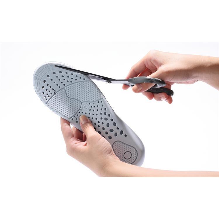 インソール裏面の約5mmごとの切り取り線を目安に、最初は少し大きめに徐々に調整しながら切ってください。