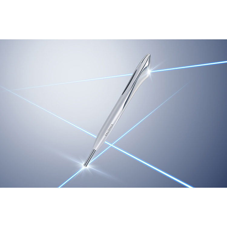 ハンドルに設けられたソーラーパネルから光を取り込み、クッションスティックから微弱電流「マイクロカレント」を発生。
