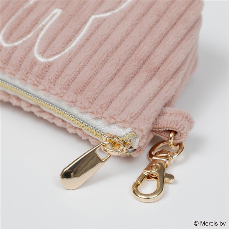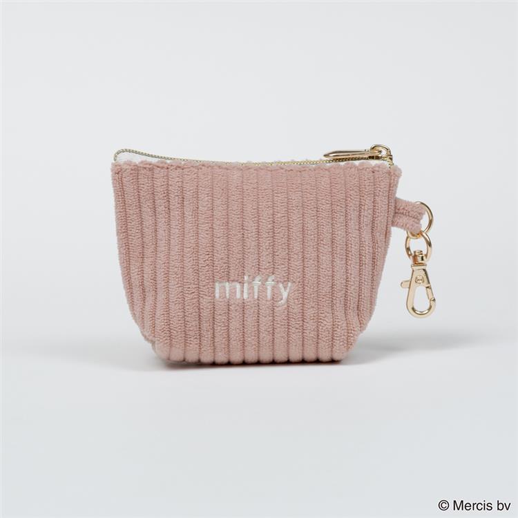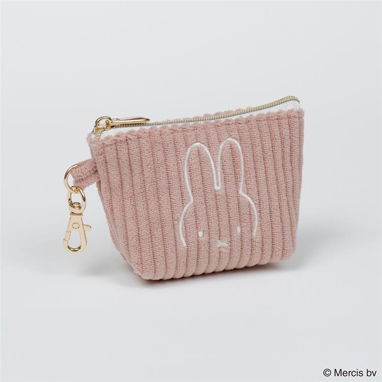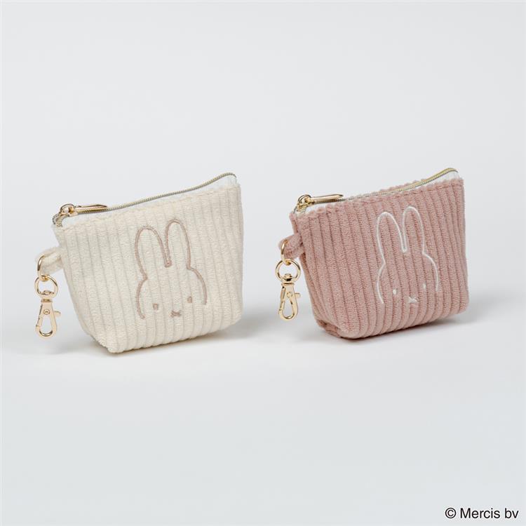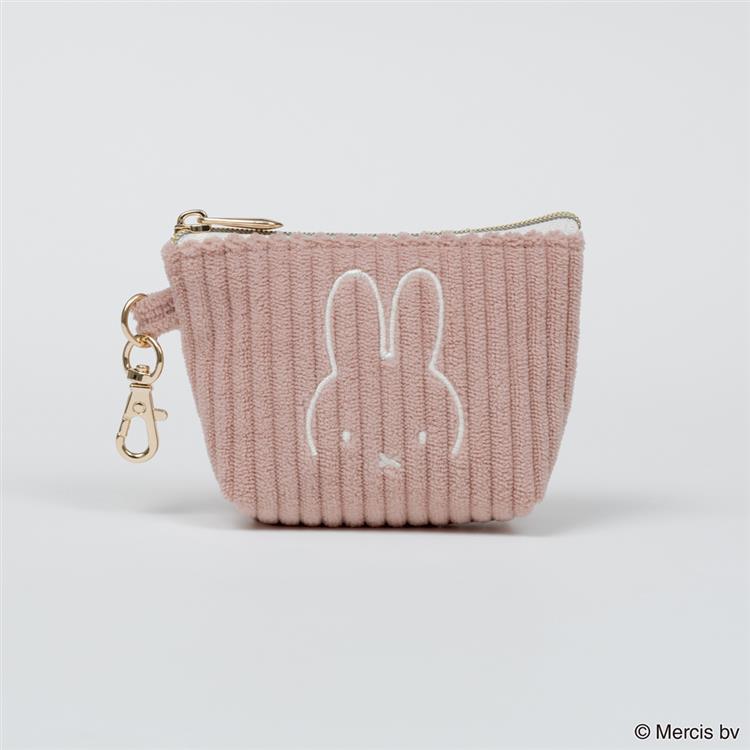 コーデュロイ生地にミッフィーのお顔を刺繍したマイクロミニ台形ポーチです。