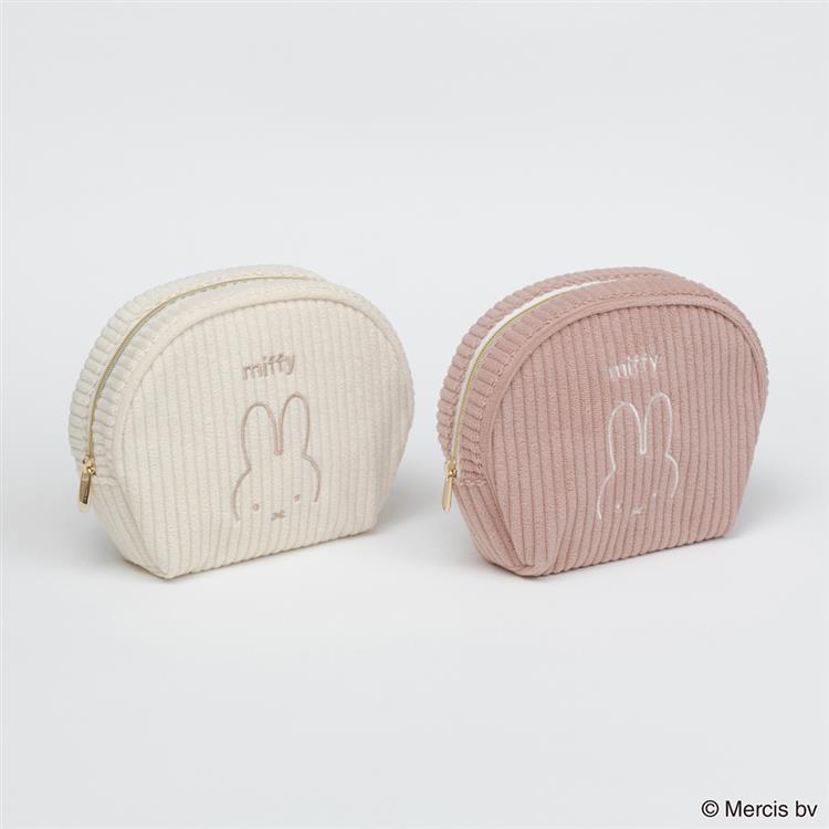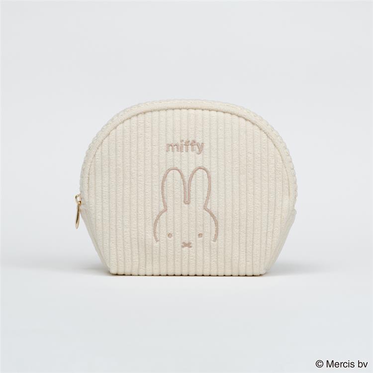 コーデュロイ生地にミッフィーのお顔を刺繍したシェル型ポーチです。