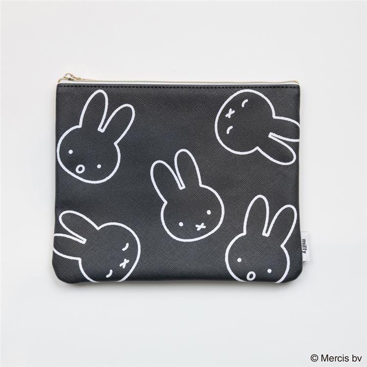 ミッフィーのいろいろな表情のお顔を大きめにレイアウトしたフラットポーチです。