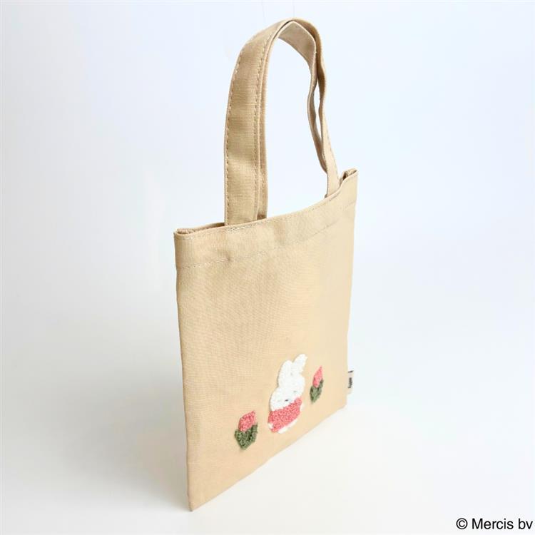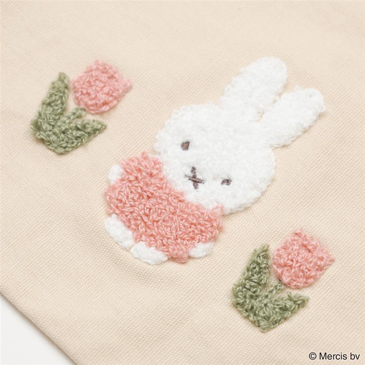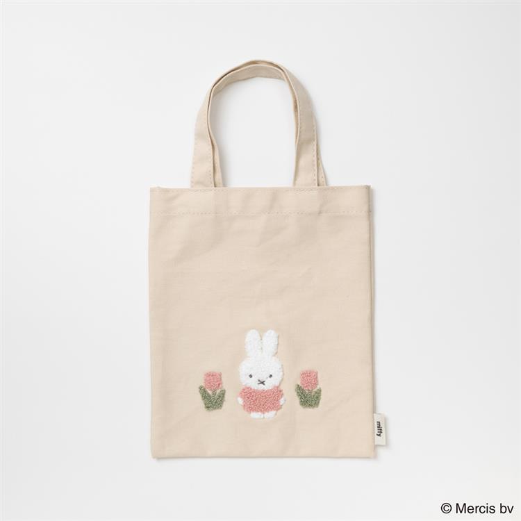ミッフィーとチューリップ柄が相良刺繍で施されたミニトートバッグです。