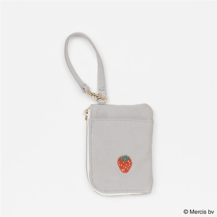 ミッフィーとイチゴ柄が相良刺繍で施されたコイン&パスケースです。