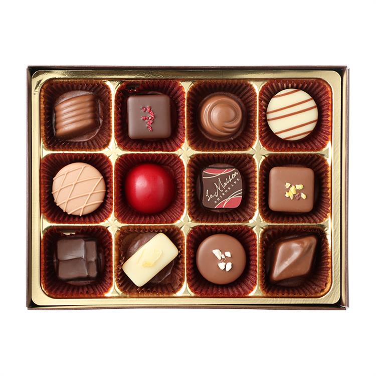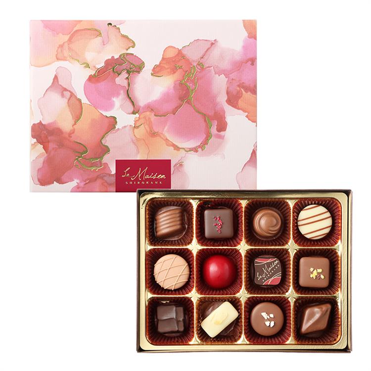 東京・白金の洋菓子店「ラ・メゾン白金」より、ナッツやフルーツ味などのチョコレートを詰め合せたバレンタインギフトです。