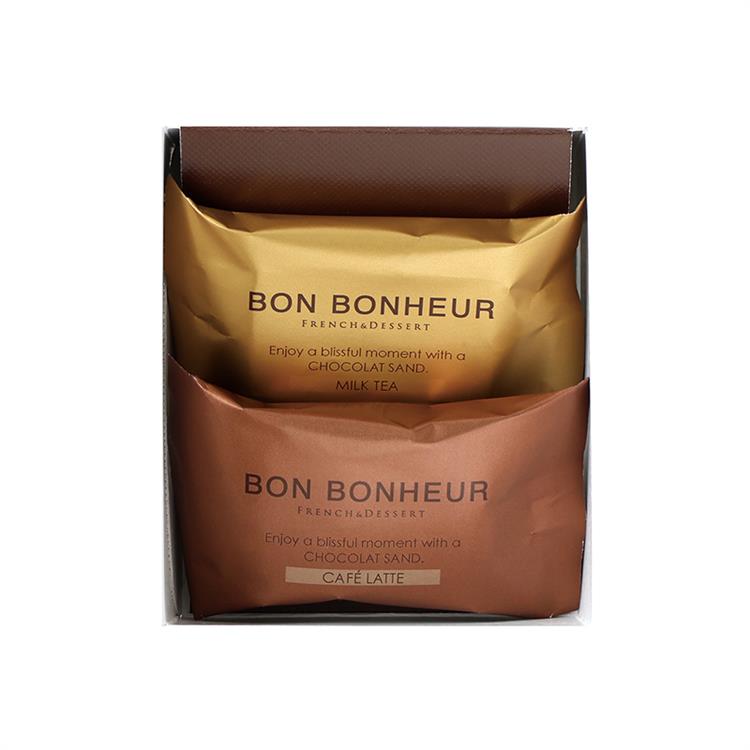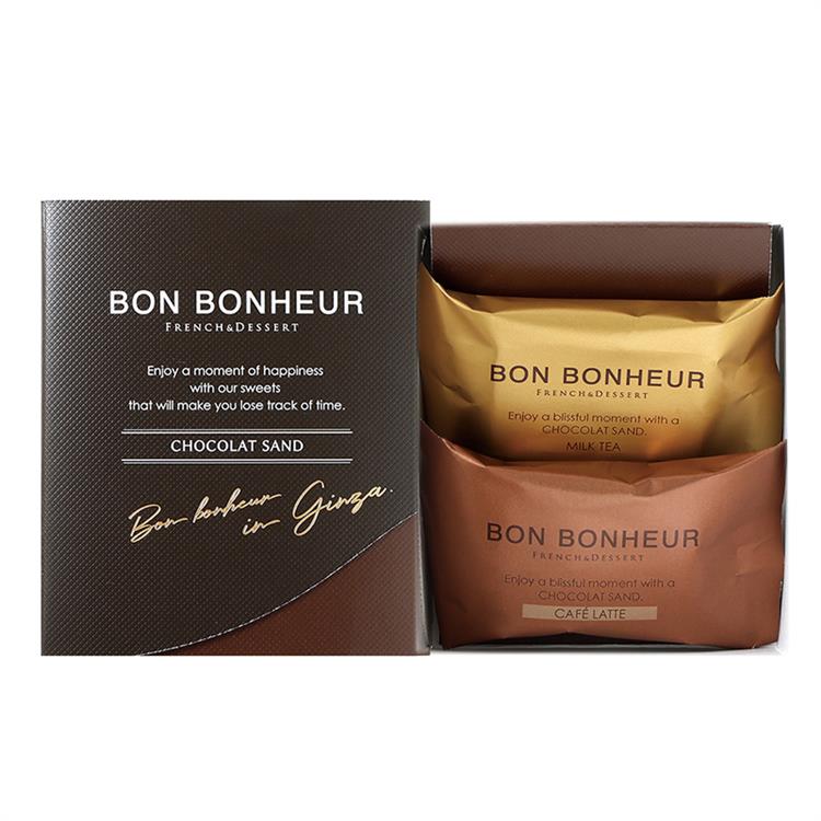 銀座のフレンチ&デセールカフェ「ボンボヌール」が贈る、カフェラテとミルクティーのサクッとクッキーショコラサンドです。