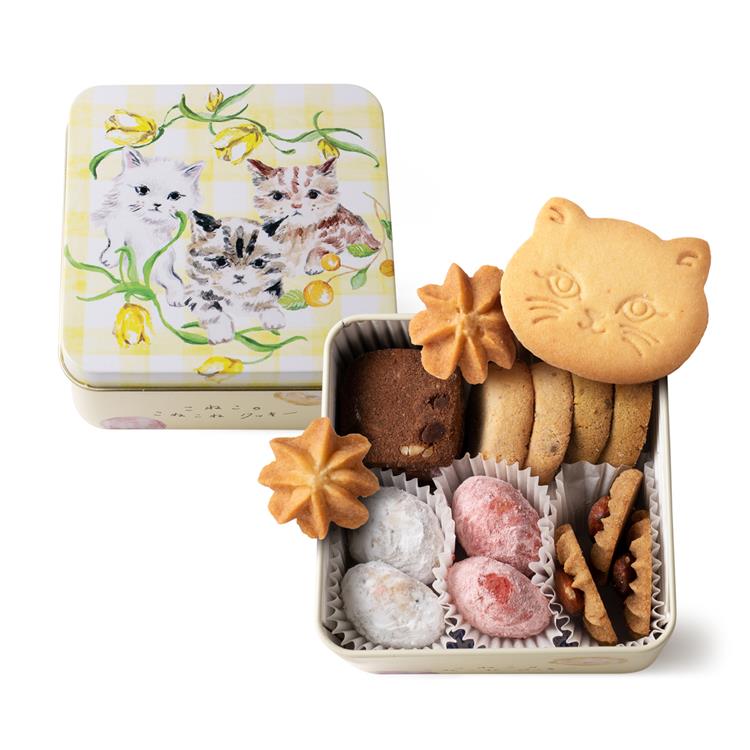 こねこがこねこね一生懸命作ったようなかわいらしいクッキー缶です。
