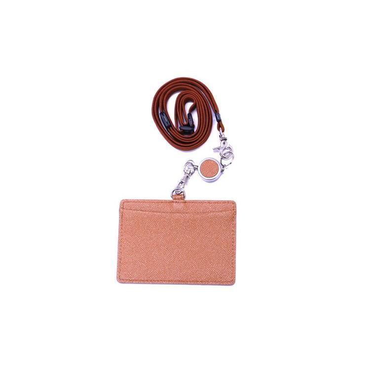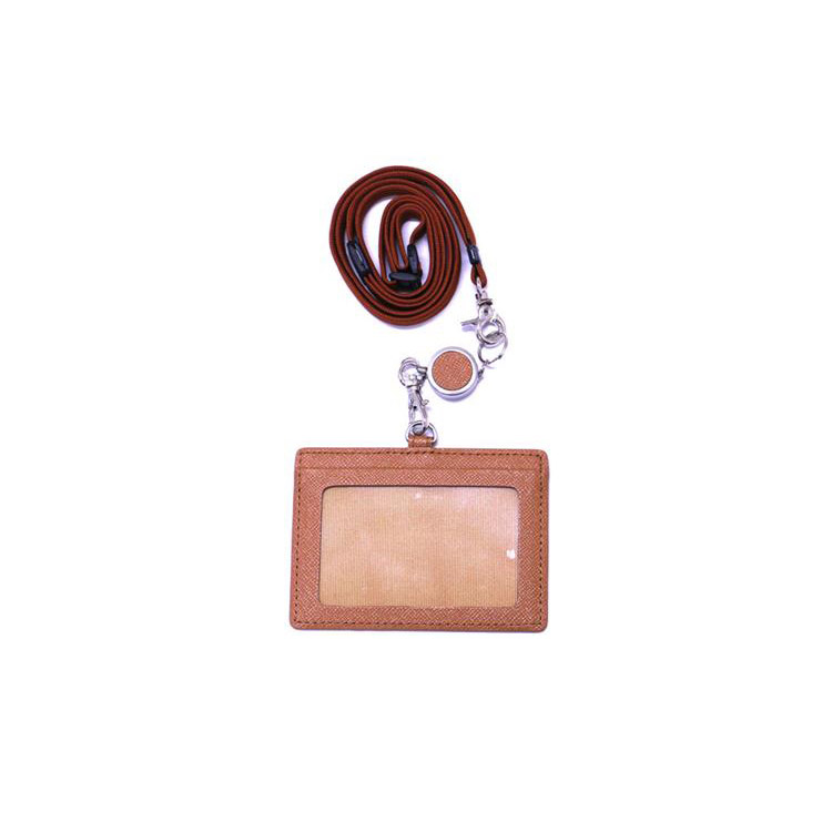 クローム鞣しを施したゴートレザー(山羊革)に上品なサフィアーノ柄の型押をエンボス加工致しました。長さ調整可能安全パーツ付きネックストラップ。