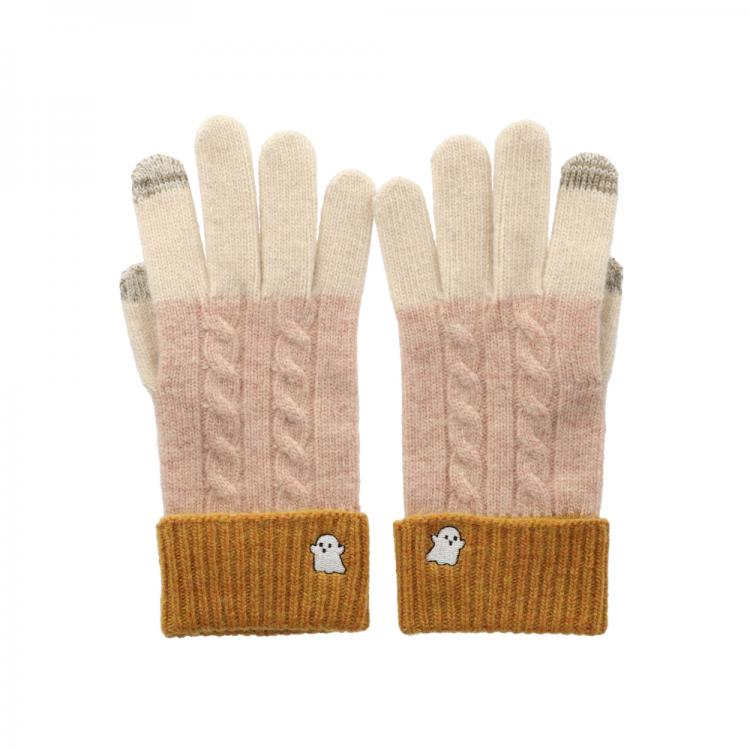 アイタッチグローブ ケーブル編み ベージュ×マスタード【ロフト限定】