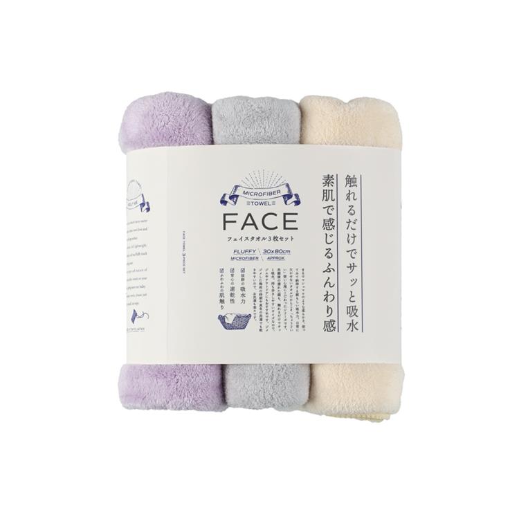 - マイクロファイバー フェイスタオル 30×80cm 3枚セット パープル【ロフト限定】