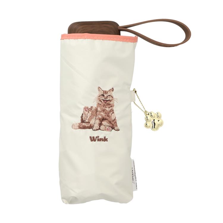 - 折りたたみ傘 コンパクト晴雨兼用 猫刺繍 ウィンク【ロフト限定】