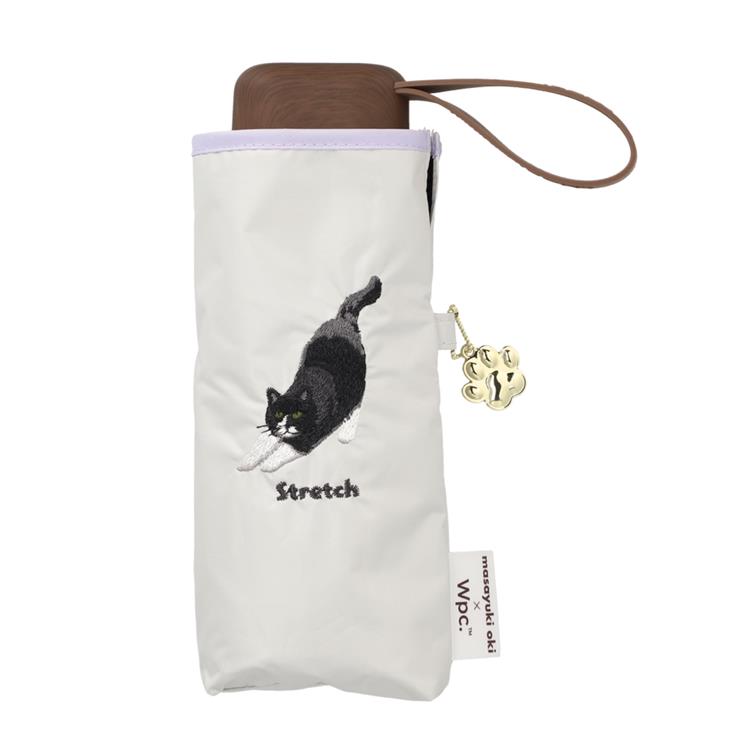 人気の猫写真家、沖昌之さんの撮影した愛くるしい猫たちの刺繍が施された折りたたみ傘です。