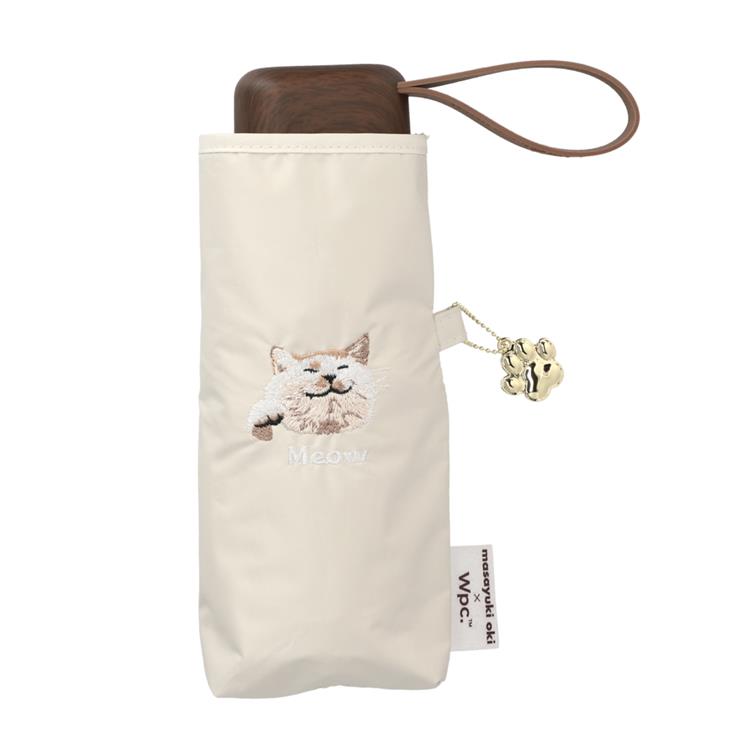 人気の猫写真家、沖昌之さんの撮影した愛くるしい猫たちの刺繍が施された折りたたみ傘です。