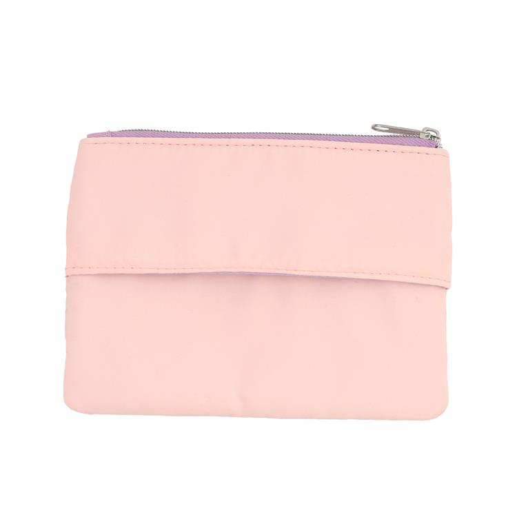 やさしいパステルカラーの大小2種類のポーチがセットになっており、小さいポーチの背面にはポケットティッシュを入れることができます。