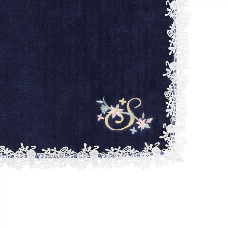 イニシャル刺繍×花レースのタオルハンカチ