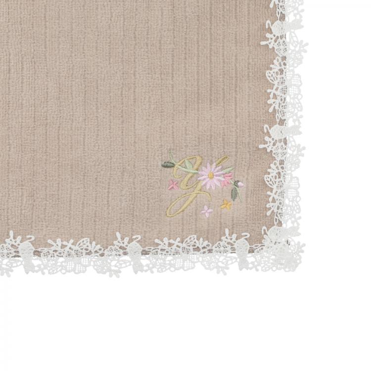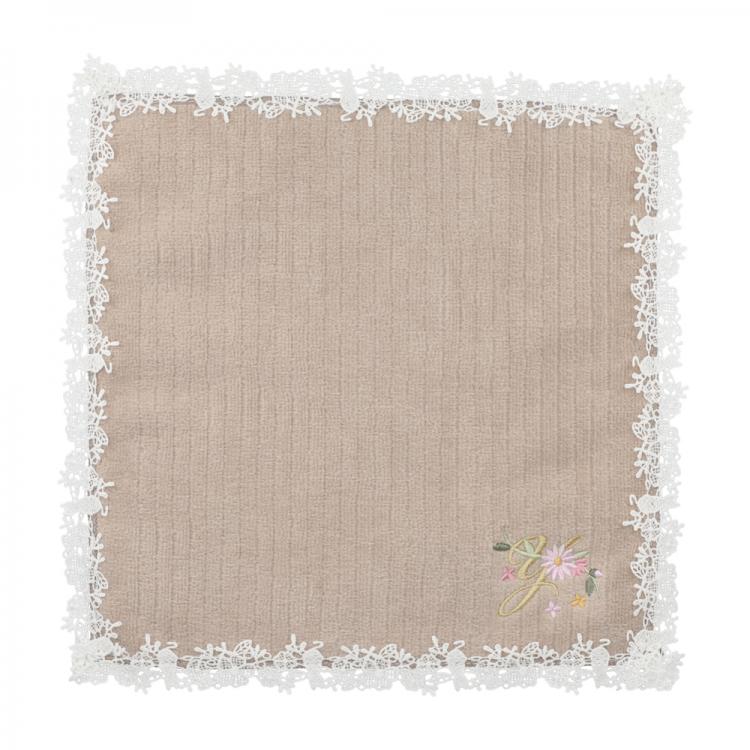イニシャル刺繍×花レースのタオルハンカチ