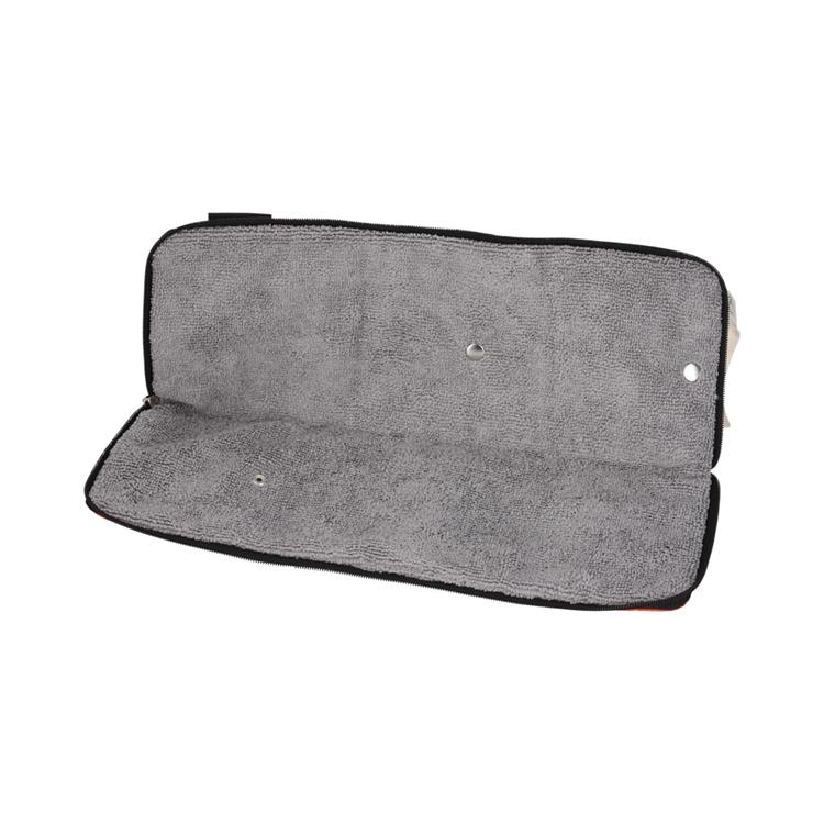 内側は吸水性の高いマイクロファイバー素材を使用しており、ファスナーが全開できるので広げればタオル状にもなり水滴を拭き取ることもできます。