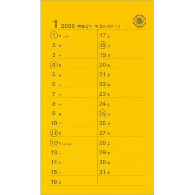 2026年1月始まり 卓上 金運 ポケットカレンダー