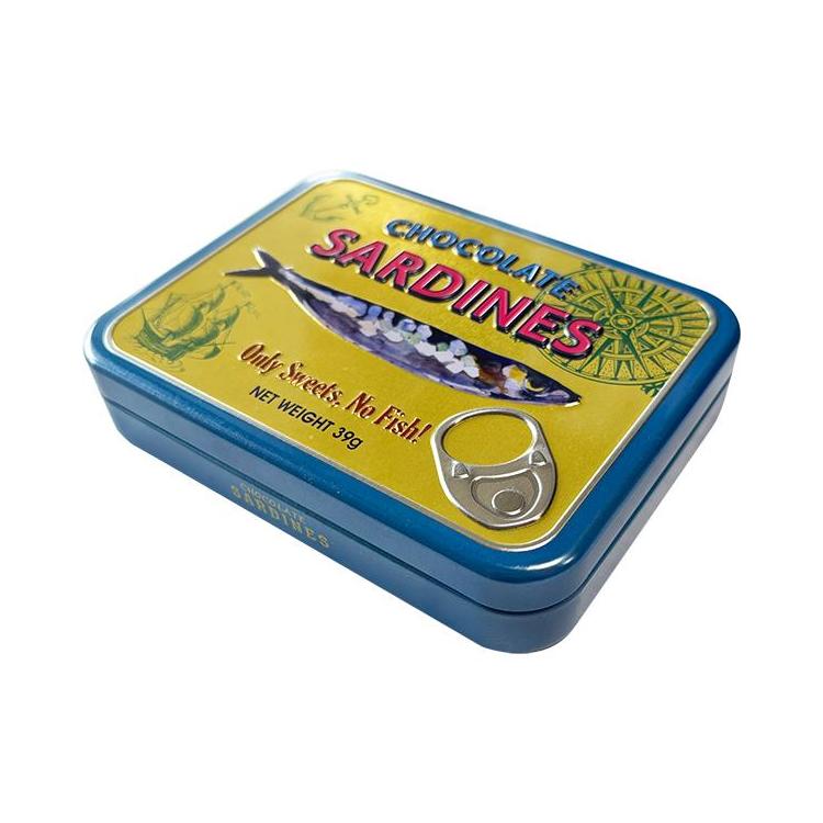 本物そっくりなオイルサーディン缶に魚型のチョコレートとストロベリー風味キャンディが入っています。