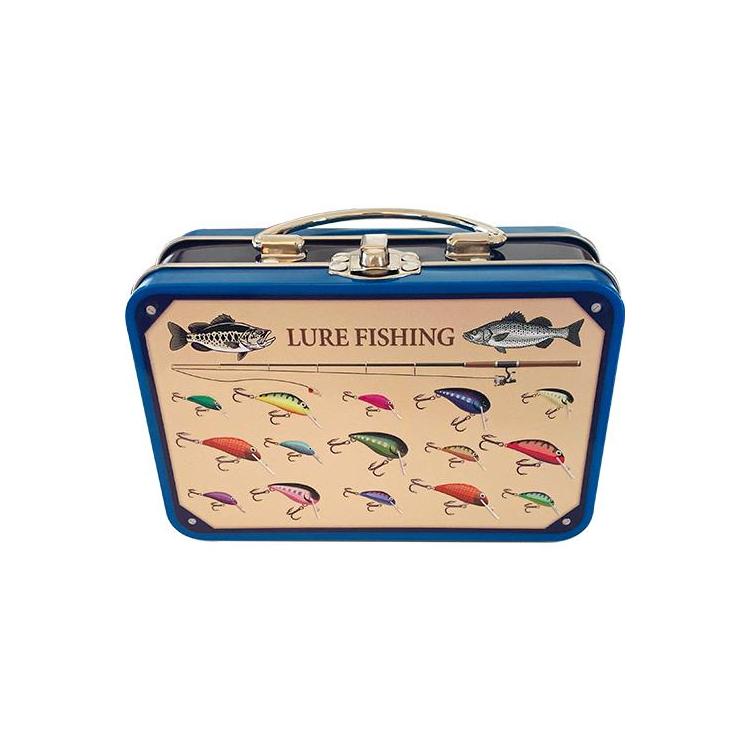 ルアーケースをモチーフにした缶の中に魚型のチョコレートとラムネが入っています。