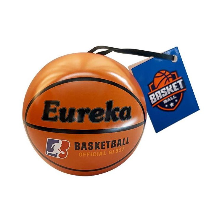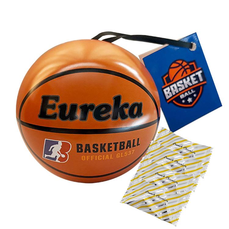 バスケットボールのデザインがされた球型の缶にクランチチョコが入っています。
