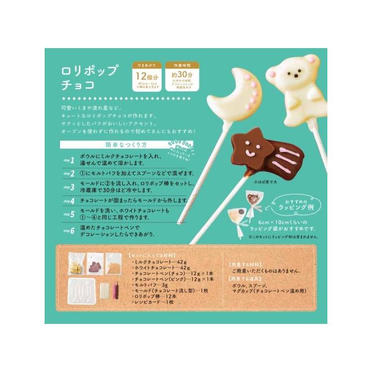可愛いくまや流れ星など、キュートなロリポップチョコが作れます。
