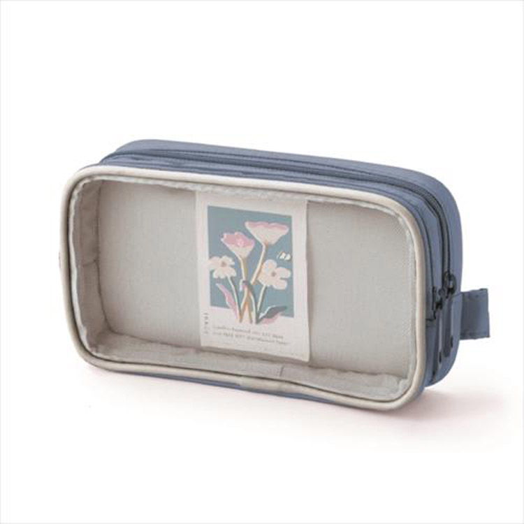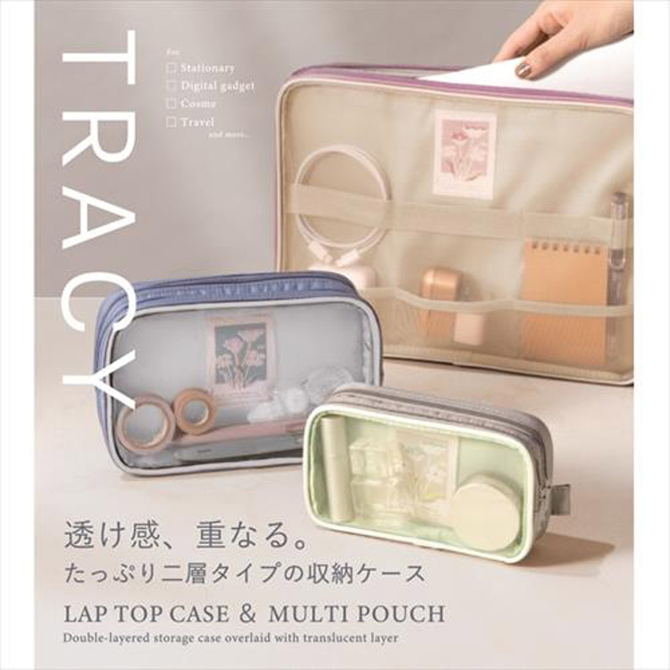しっかり収納できるポケットと、中身が見える半透明のメッシュポケットの2層式マルチポーチ。