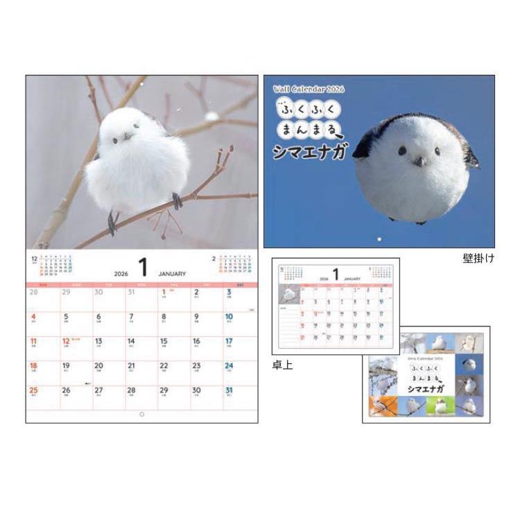 2026年1月始まりカレンダー 卓上・壁掛け ふくふくまんまる、シマエナガ