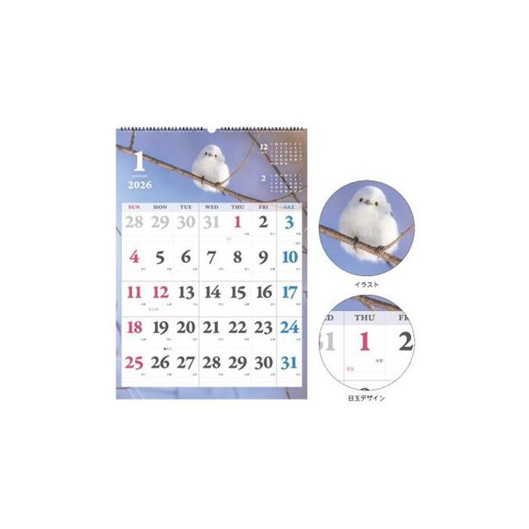 - 2026年1月始まりカレンダー 壁掛け A2 デカ文字 シマエナガ