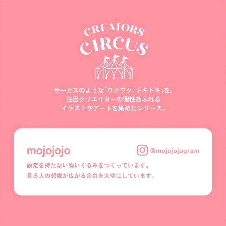 - mojojojo:設定を持たないぬいぐるみをつくっています。見る人の想像が広がる余白を大切にしています。