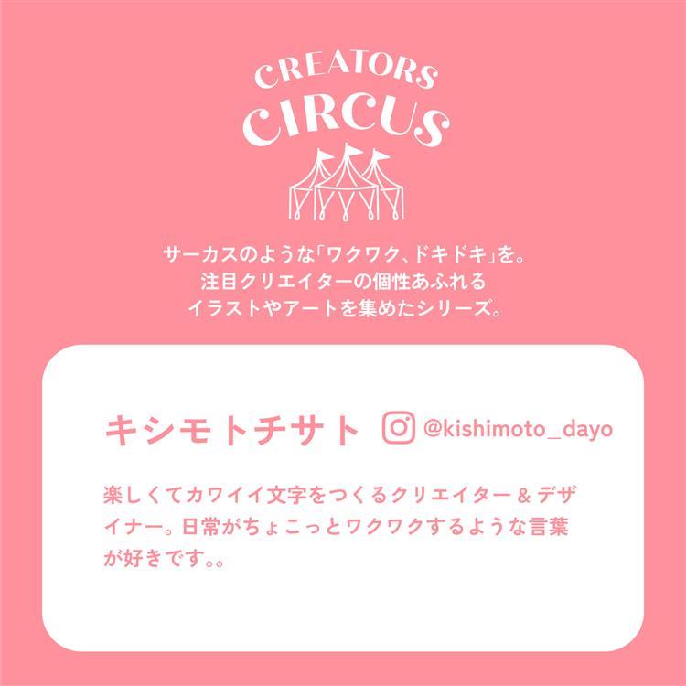- キシモトチサト:楽しくてカワイイ文字をつくるクリエイター&デザイナー。 日常がちょこっとワクワクするような言葉が好きです。